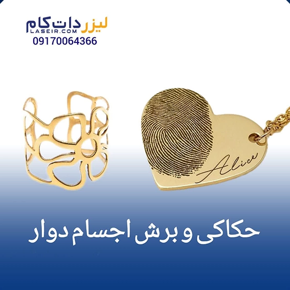 - حکاکی زیورآلات: حکاکی نامها، تاریخها، لوگوها و طرحهای سفارشی روی انگشتر، دستبند، گردنبند و سایر زیورآلات
