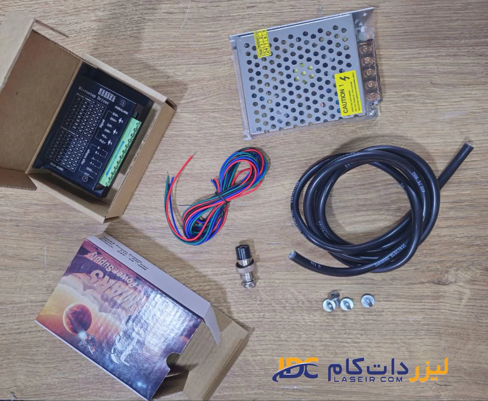 پکیج قطعات نصب روتاری شامل تجهیزاتی است که برای استفاده از روتاری دستگاه لیزر حکاکی به آنها نیاز دارید. این بستۀ کامل شامل: درایور، پاور، کابل و اتصالات ضروری دستگاه است.
